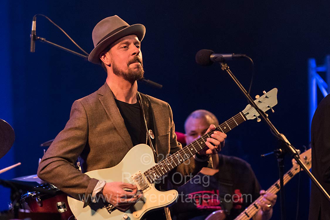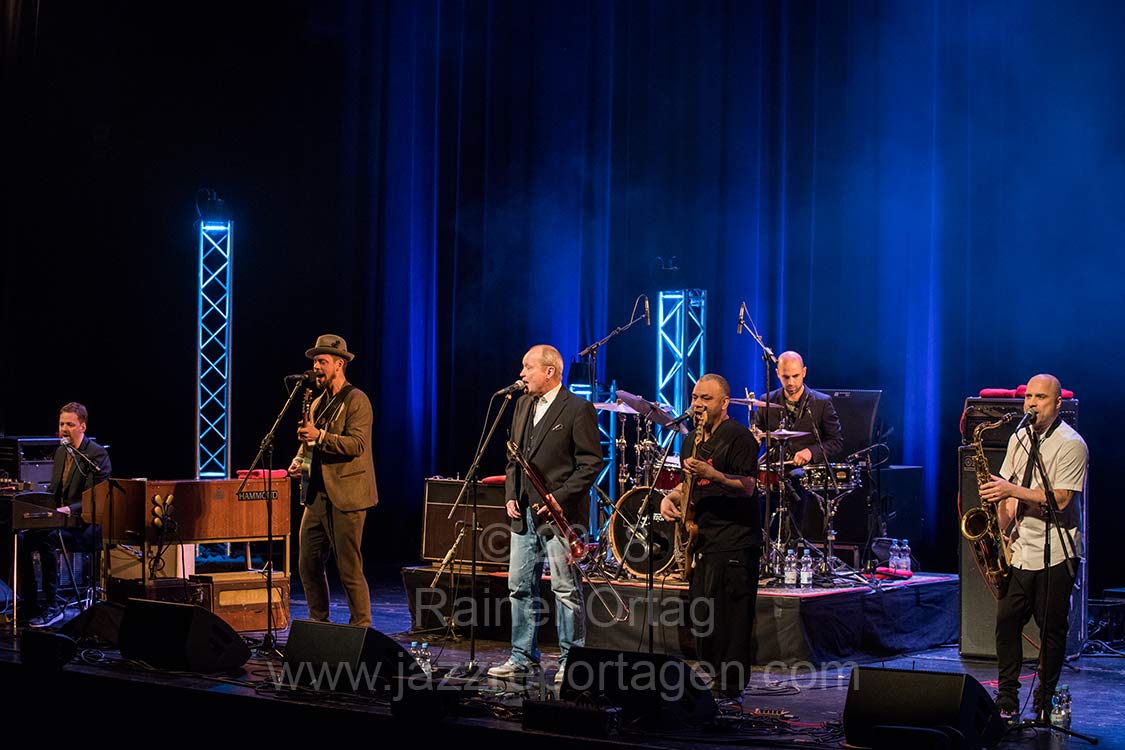 Nils Landgren Funk Unitim Theaterhaus Stuttgart am 31. März 2018Nach Auswahl eines Bildes bitte rechts oder links ins Foto klicken oder Taste → und ← zum blättern.Andy Pfeiler, g, voc Magnum Coltrane Price, b, voc Jonas Wall, sax Petter Bergander, keys Robert Ikiz, dr Nils Landgren und seine Funk Unit präsentierten am Ostersamstag im ausverkauften Saal T1 vor 970 Besuchern ihr jüngstes Album "Unbreakable", das letzten Juni bei ACT erschien und nun in Stuttgart erstmals live zu hören war. Gleich ab der ersten Nummer gab die Band Funk-Vollgas. Der titelgebenden Bandhymne "Unbreakable" , eingeleitet durch die steilen Riffs des Gitarristen Andy Pfeiler, folgte in den nächsten gut 90 Minuten ein Mix aus knackig-funkigen Stücken des neuen Albums (Friday Night, Just A Kiss Away, Stars In Your Eyes, Get Down On The Funk, Rockin After Midnight) und altbewährten Nummern (wie etwa Funk For Life oder All We Need Is The Funk). Dabei wirkte die Band routiniert und bestens aufeinander eingespielt. Dank der Charme-Offensive des alten Bühnenhasen Landgren sprang auch gleich ein erster Funke über. Tags zuvor hatte die Band in Paris gespielt und Nils Landgren deutete effektvoll an, dass das Stuttgarter Publikum um Klassen besser sei. Kraftvoll treibende Rhythmen und Grooves ließen das Energielevel bald weiter steigen. Der Bandleader blies intensiv und ausdrucksstark seine Posaunen-Soli und auch Gitarrist Andy Pfeiler, Saxofonist Jonas Wall und Keyboarder Petter Bergander nutzten ihre Slots für eindrucksvolle, virtuose Soli. Der Bassist Magnum Coltrane Price und Drummer Robert Mehmet Ikiz standen im Klangbild ohnehin stark im Vordergrund - die Soundmischer hatten es mit ihnen besonders gut gemeint. Zum Nachteil von Petter Bergander, der nicht nur ein Fender Rhodes, sondern auch eine Hammond B3 spielte, die leider außerhalb seiner Soli nur optisch zu bewundern war! Zwischen den Songs moderierte Nils Landgren sympathisch-launig, plauderte über die Entdeckung seiner Funk Unit durch ACT-Label-Chef Siggi Loch auf der Jazz Baltica 1994 (dieser saß wie schon am Abend zuvor im Stuttgarter Publikum), erzählte etwas über die Stücke und sprach über das Hilfsprojekt "Funk For Live", bei dem die Band mit der Organisation Ärzte ohne Grenzen zusammenarbeitet, um Slum-Kindern in Nairobi Musikinstrumente zur Verfügung zu stellen und gemeinsam zu musizieren. Wer dieses Konzert erlebt hat, ahnt, warum der schwedische Hansdampf mit der roten Posaune als einer der populärsten Jazz-Musiker Europas gilt: Er ist nicht nur ein exzellenter Musiker, der hochkarätige Musiker um sich schart, sondern auch ein mit allen Wassern gewaschener Bühnenprofi, der weiß, wie er sein Publikum für sich gewinnt: Gegen Ende des Konzerts im Stuttgarter Theaterhaus steigt Nils Landgren wie ein Popstar von der Bühne und geht mit der Posaune solierend durch den ganzen Saal bis in die hinteren Reihen. Er lädt zum Tanzen ein und zählt schließlich von drei rückwärts, damit bei null sich alle von ihren Sitzen erheben und mittanzen. Und es funktioniert, auch die Mitsing-Aktion, ob man das mag oder nicht. Dass Nils Landgren mit seiner Funk Unit auch noch mit dem zehnten ACT-Album die Hallen füllt: Chapeau! Claudia Rodi |